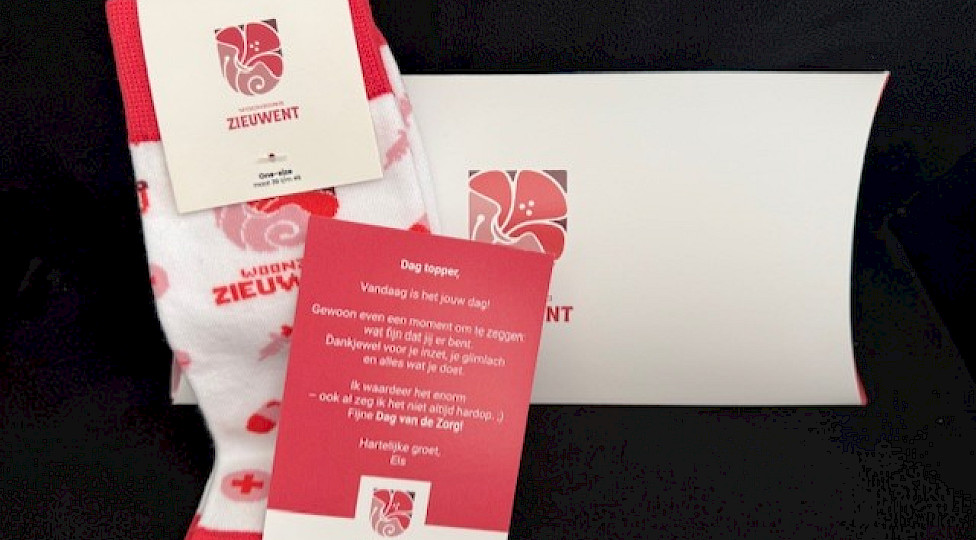 Als blijk van waardering kregen zij allemaal een paar vrolijke ‘Sokkies’ in Woonzorg Zieuwent stijl. Een klein gebaar met een grote knipoog.