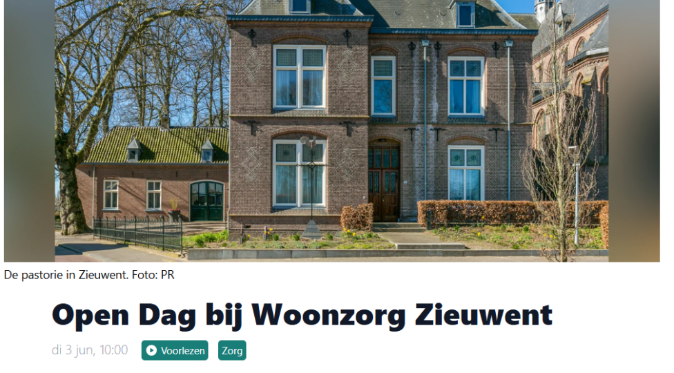 ZIEUWENT – Op zoek naar een fijne en warme woonplek voor als thuiswonen niet meer gaat? Een baan of vrijwilligerswerk binnen een kleinschalige zorgorganisatie? Of gewoon heel nieuwsgierig naar hoe de voormalige Zieuwentse pastorie er nu van binnen uitziet en het dagelijks leven er aan toegaat?