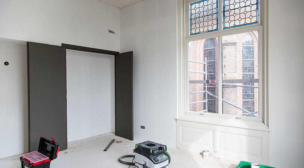 Het koetshuis wordt straks de ruimte waar bewoners, maar ook dorpsgenoten, samenkomen. Daar brengen ze een groot deel van de dag door. Om het daar gezellig te maken en te zorgen dat de mensen uitzicht hebben op de monumentale tuin, is het belangrijk dat er voldoende daglicht binnenkomt. Dat bracht een uitdaging met zich mee. Want voorheen was de toekomstige huiskamer een garage waar eerst de koets en daarna de auto van de pastoor geparkeerd stond. Er was geen enkel raam aanwezig. Daarom zijn er tien nieuwe vensters in het koetshuis gerealiseerd.