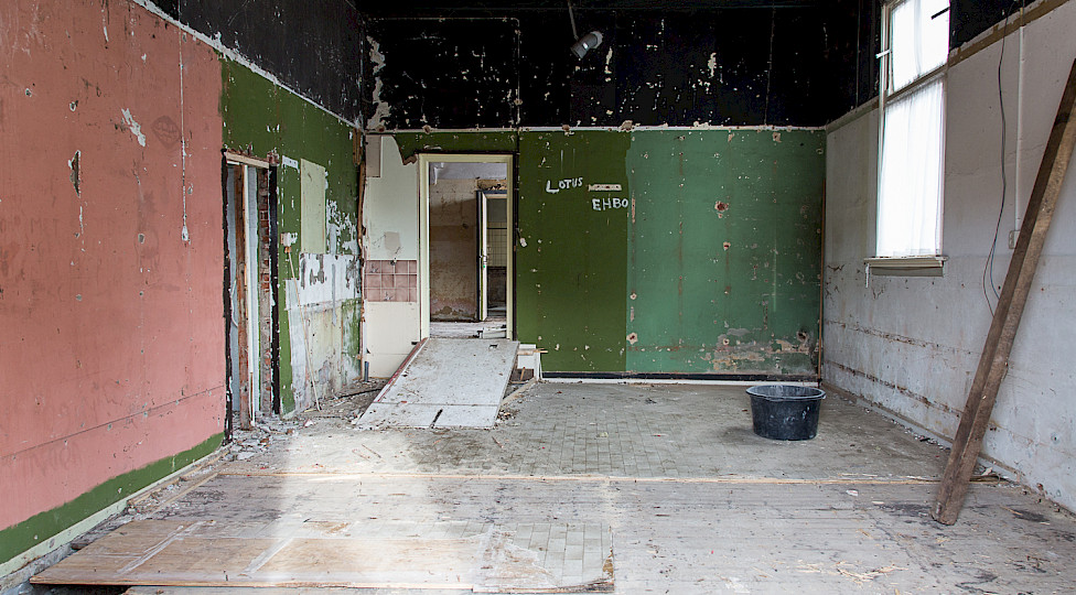 Iedereen die de pastorie wel eens van binnen heeft gezien kent de natuurstenen vloer in de hal. Het marmer is beeldbepalend voor het monumentale en statige karakter van het pand. Als je er weleens op gelopen hebt dan weet je dat de vloer in de wintermaanden erg koud aan voelt. Dat past niet bij het comfort en de aangename binnentemperatuur die we straks de bewoners willen bieden. Om een aangename binnentemperatuur te creëren wordt de vloer geïsoleerd. Makkelijk, denk je misschien. Leg een isolatielaag en een nieuwe vloer over de tegels heen en klaar ben je. Maar nee. Want naast comfort willen we ook de nostalgie van de pastorie behouden. Dus wordt de vloer nu tijdelijk verwijderd en, na het leggen van een geïsoleerde betonnen ondervloer met vloerverwarming, weer teruggelegd. Niet de makkelijkste weg, want de oude vloer is er lastig uit te krijgen. Om toch de vloer te kunnen hergebruiken worden de tegels er stuk-voor-stuk met precisie uitgezaagd. Deze slaan we tijdelijk op, zodat ze tijdens de afbouw weer opnieuw gelegd kunnen worden.