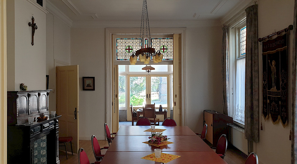 Straks wordt het weer druk in de pastorie. Voorheen was dat niet anders. Niet alleen de pastoor woonde daar als hoofd van de parochie. Ook veel andere bewoners maakten gebruik van de voormalige ambtswoning. ‘Denk aan de kapelaans die als hulppastoor fungeerden’, vertelt Henri Waalderbos. Zij leidden bijvoorbeeld vroeger de kindermis voordat we naar school gingen. Dan waren er soms wel drie vieringen tegelijk in de kerk. Ik herinner me nog dat alleen de pastoor gebruik mocht maken van het hoofdaltaar. De kapelaans waren veroordeeld tot de zijaltaren waar ze ook hun eigen viering hielden. Van hen kregen we na school godsdienstles.’ Wie er ook in de pastorie woonde was de pastoorsjuffrouw, een soort secretaresse van de pastoor. Ze had allerlei taken, zoals het ontvangen van gasten. Die wees ze naar de wachtkamer. Veelal kerkgangers die wilden praten met de pastoor over de moeilijke dingen in het leven. De gesprekken vonden plaats in de werkkamer. Jos Kolkman: ‘Ik ben er één keer binnen geweest, toen ik solliciteerde als misdienaar. Ik werd aangenomen. Maar wat me het meeste is bijgebleven is het speciaal geplaatste raam in die ruimte, zodat de pastoor altijd kon zien wie er bij de voordeur aanbelde.’ In de weekenden was het in de pastorie helemaal een drukte van belang. Vaak kwam dan familie van de pastoor op visite. Of hoog bezoek vanuit het bisdom. Om alle gasten kwijt te kunnen werd de woonkamer en suite gebruikt. Veel van hen bleven overnachten in een van de luxe logeerkamers die zich bevonden op de eerste verdieping. De dienstmeisjes, die ook in de pastorie woonden, hadden hun handen eraan vol.