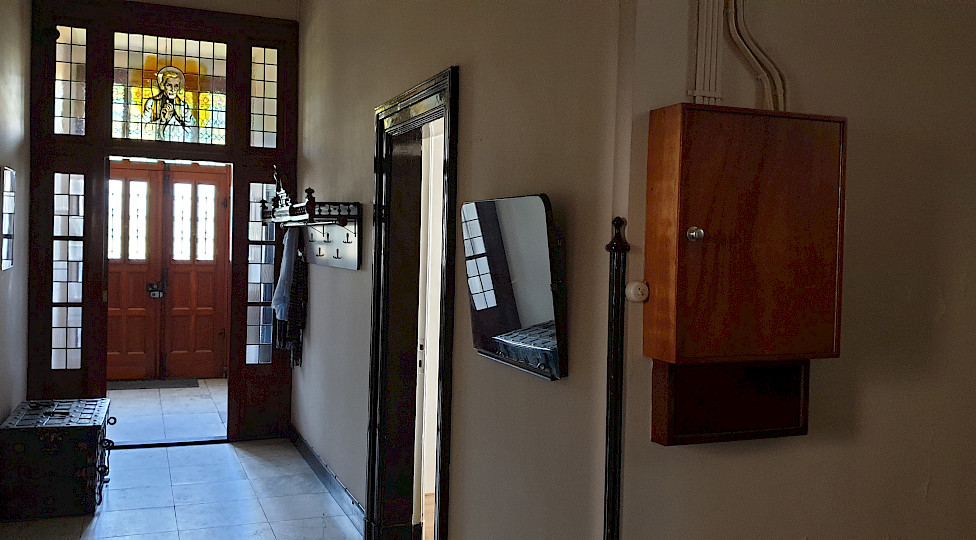 De bewoners van Woonzorg Zieuwent leven straks samen als in een huishouden. Met elkaar wordt er gekookt, gegeten, koffie gedronken, getuinierd en de was gedaan. Net als vroeger. De pastoor, kapelaan, huishoudster en de hulp leefden toen ook gezamenlijk in de pastorie. ‘Als je er wilde werken, moest je er ook wonen’, vertelt Fien die er op haar zestiende als hulp in de huishouding haar intrek nam. ‘Dat kwam mijn moeder goed uit, want nadat mijn vader was overleden moest ze alleen voor tien kinderen zorgen. In het weekend mocht ik naar huis, maar ik sliep altijd in de pastorie.’ Fiens slaapkamer was op de eerste verdieping tegenover de trap, waar straks een gezamenlijke badkamer komt. ‘Vroeger hadden we maar één badkamer met z’n allen. Iedereen mocht maar eens per week in bad. Ik was altijd op vrijdag aan de beurt. Op de rest van de dagen wasten we ons ‘s ochtends bij het lampetstel (een waskom en waterkan, red.) op de slaapkamer.’
