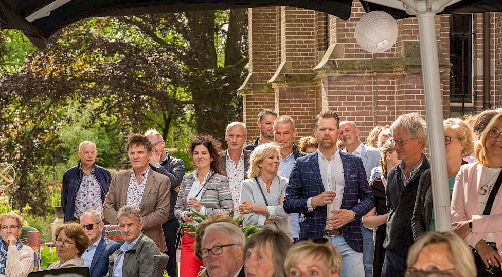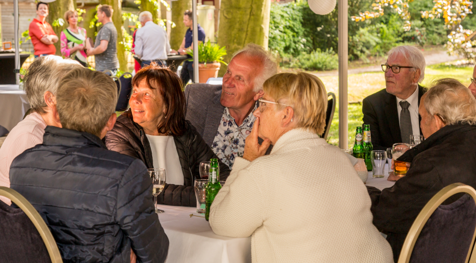 De zon schijnt, de tuintenten zijn opgezet en de tafels waren mooi gedekt. De eerste genodigden druppelde langzamerhand binnen, Karin en Marijke van PEERtoftheater heten alle gasten onder het genot van een glaasje champagne en een petitfour welkom. Vandaag werd de lang gekoesterde droom van Els werkelijkheid, samen met de mensen die haar de afgelopen tijd hebben gesteund werd Woonzorg Zieuwent officieel geopend. Na het welkomstwoord van PEERtoftheater kreeg Els de mogelijkheid om alle genodigden mee te nemen in haar fietstocht. ‘Het parcours was duidelijk, maar gedurende zo’n koers neem je de nodige bagage mee. Het was een fietstocht waarin je de ene keer de wind mee hebt en de andere keer tegen, maar door samen te werken met verschillende reisgenoten kwam de finish in zicht.’ Het einde van de fietstocht is geëindigd voor de pastorie. ‘Voor mij en vele andere is dat een nieuw beginpunt geworden en tot knooppunt gemaakt’. Ook de burgermeester Annette Bronsvoort was aanwezig die in haar speech sprak met de volgende woorden ‘Er wordt weleens gezegd: de kwaliteit van de samenleving lees je af aan de manier waarop we omgaan met de mensen die kwetsbaar zijn. Woonzorg Zieuwent zal een hele belangrijke bijdrage aan de kwaliteit van de samenleving leveren.’ Toen was het écht zover, op een blauwe geschilderde omafiets, fietsten Els en burgemeester Annette Bronsvoort door een aaneengeregen lint van slingers die de bewoners van Woonzorg Zieuwent vasthielden het ‘Koetshuis’ binnen. Woonzorg Zieuwent werd officieel geopend! Na dit feestelijke moment werden alle gasten uitgenodigd voor een rondleiding en een drankje op het terras in de tuin.