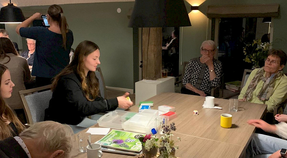 Wij zijn Sis en Lisa en wij zijn 13 en 14 jaar oud. Wij zitten in groep VO 3,4 van 't Gilde en zijn op maandagavond 14 oktober bij Woonzorg Zieuwent geweest. We zijn daar met een groep van 10 heen gegaan samen met 3 leiders. We hebben spellen gespeeld zoals vragenderwijs en bingo en veel gepraat! We vonden het super leuk, en we zijn nog achter veel dingen gekomen uit vragenderwijs, maar ook van de verhalen van vroeger die de bewoners vertelden. Toen we aankwamen was het voor sommige bewoners beetje overweldigend en wilden zij het eventjes aanzien, maar zodra we aan het praten kwamen was het super gezellig met elkaar en zag je ze steeds meer stralen.