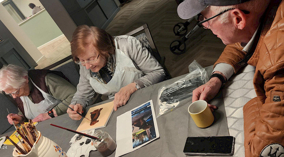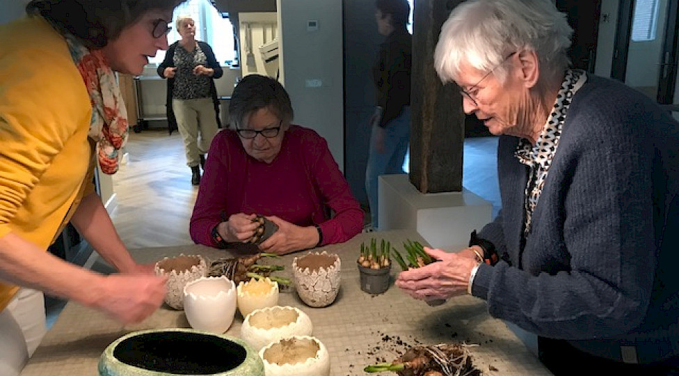 Woonzorg Zieuwent is ook actief op het gebied van cultuur en creativiteit. Maandelijks komen de zangeressen van Zus & Zo om samen met de bewoners te zingen. Ook is er elke maand een filmavond en we zijn kort geleden begonnen met schilderlessen. Bewoners vinden dat ontspannend om te doen. En onder het toeziende oog van docent Ceciel Hummelink leidt dit tot mooie resultaten. Andere bewoners zijn weer graag op een andere manier met hun handen bezig, zoals tijdens het planten van bollen in leuke potjes. Deze zullen de locatie binnenkort opfleuren. Op 29 maart werken we gezamenlijk aan een paasstuk.